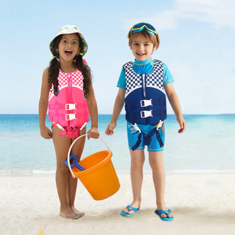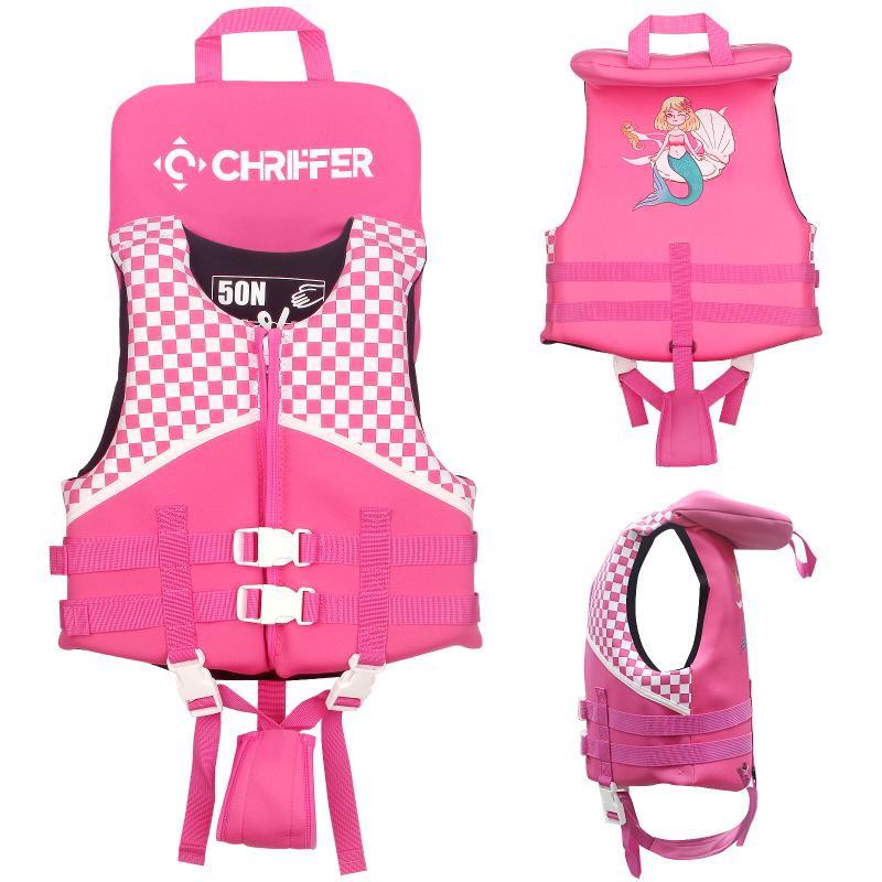 This vest-style children’s life jacket is made from high-quality stretch neoprene diving fabric with a three-layer composite structure, providing a soft, elastic feel that ensures safety and confidence during water activities. Its unique design includes eye-catching colors, an adjustable wide crotch strap, and head support for added safety. A fun, fashionable cartoon pattern on the back adds to its appeal, making it a life jacket that is both safe and enjoyable for children.