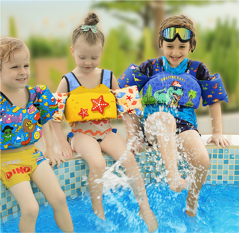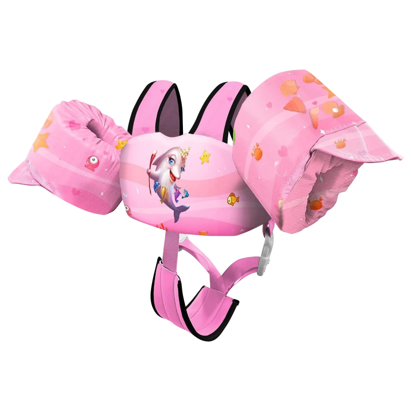 This life jacket is our latest upgraded style. In addition to the added buoyancy material, the design of the shoulder straps makes beginners feel more secure when swimming. They don’t have to worry about falling off when playing freely. The wide adjustable crotch strap below, gives swimmers more buoyancy support, our products not only ensure safety, but also pay attention to appearance design and color matching, retaining children’s childlike colors and dreamy cartoon patterns to the greatest extent, stimulating swimmers’ interest and making them happy in it.